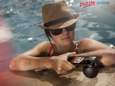 Puzzle Basen, Dziewczyna, Telefon, Kapelusz
