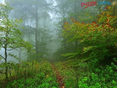 Kraj Basków, Mgła, Drzewa, Zielony, Hiszpania, Las, Ścieżka