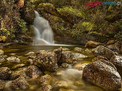 Wodospad Ladies Bath Falls, Kamienie, Australia, Park Narodowy Mount Buffalo, Jeziorko