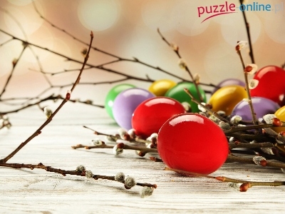 Puzzle Bazie, Kolorowe, Jajka, Wielkanoc