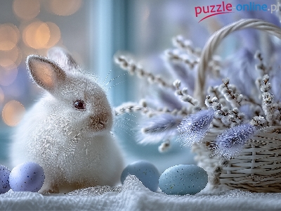 Bazie, Królik, Biały, Pisanki, Kłosy, Wielkanoc, Grafika AI, Koszyk, Trawa