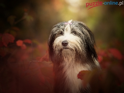 Jesień, Bearded collie, Rozmyte Tło, Pies, Głowa, Liście