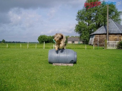 Puzzle beczka, Owczarek kataloński, trawa, szopa