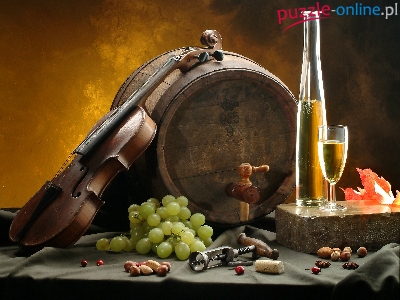 Puzzle Wino, Beczka, Winogrona