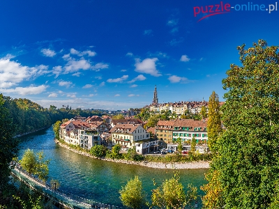 Szwajcaria, Rzeka Aare, Berno, Drzewa, Domy