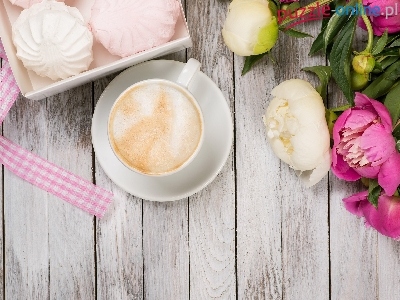 Bezy, Filiżanka, Deski, Kawa, Piwonie, Pudełko