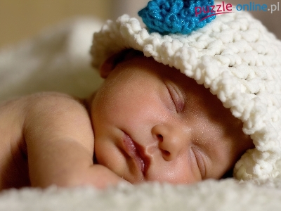 Puzzle Biała, Śpiący, Bobasek, Czapeczka
