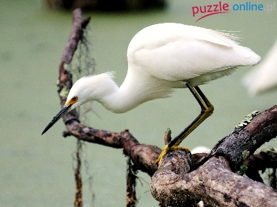 Puzzle Biała, Gałęzie, Drzewa, Czapla
