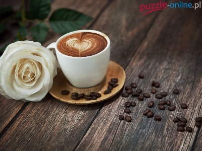Puzzle Biała, Kawa, Filiżanka, Róża