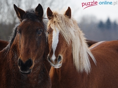 Puzzle Biała, Dwa, Konie, Grzywa