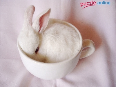 Puzzle Biała, Biały, Króliczek, Filiżanka