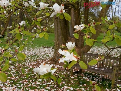 Biała, Ławeczka, Wiosna, Park, Magnolia