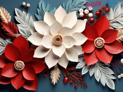 Papierowe, Białe, Czerwone, Grafika, Kwiaty