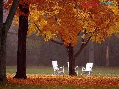 Białe, Jesień, Drzewa, Krzesła
