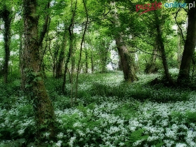 Puzzle Białe, Las, Drzewa, Kwiatki