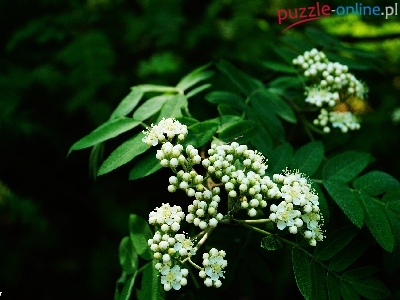 Puzzle Białe, Las, Drzewo, Kwiaty