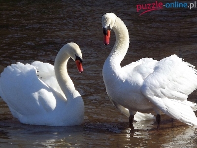 Puzzle Białe, Łabędzie, Dwa, Woda