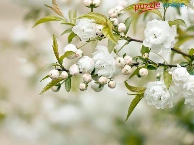 Puzzle Białe, Drzewo, Gałązka, Kwiatki
