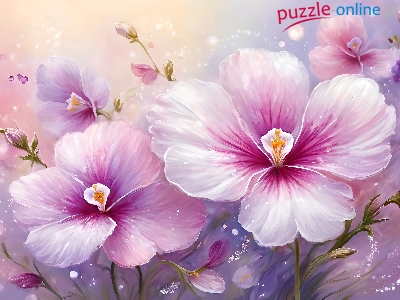 Puzzle Grafika, Kwiaty, Różowo-białe