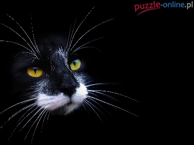 Puzzle Białe, Czarny, Kot, Wąsiki