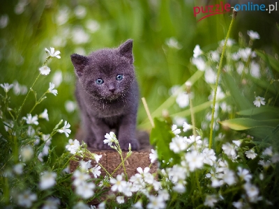 Puzzle Białe, Mały, Kotek, Kwiatki
