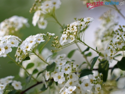 Puzzle Białe, Tawuła Van Houttea, Krzew, Kwiaty