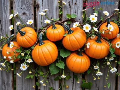 Listki, Gałązki, Dynie, Białe, Deski, Kwiaty