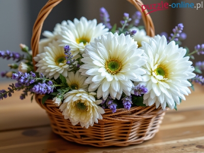 Koszyk, Chryzantemy, Kwiaty, Białe, AI, Lawenda