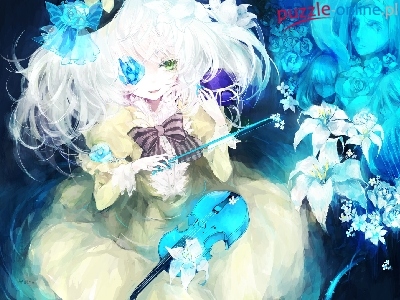 Białe, Skrzypce, Kwiaty, Dziewczyna, Manga, Włosy