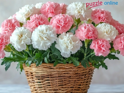 Kwiaty, Białe, Różowe, Kosz, Goździki