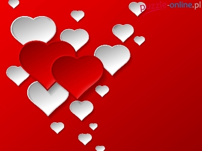 Puzzle Białe, Walentynki, Serca, Czerwone