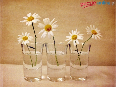 Puzzle Białe, Szklanki, Woda, Margarytki