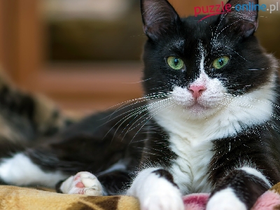 Puzzle Zielone, Biało-czarny, Kot, Oczy