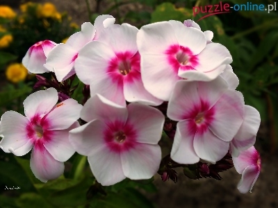 Puzzle Biało, Kwiaty, Floksy, Różowe