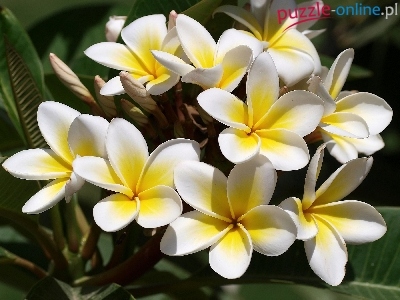 Puzzle Żółta, Kwiaty, Biało, Plumeria