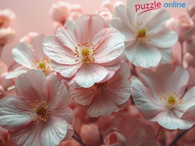 Puzzle Gałązki, Biało-różowe, Kwiaty, Pąki