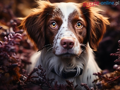 Puzzle Mordka, Biało-rudy, Pies, Rośliny
