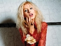 spojrzenie, Christina Aguilera Christina Aguilera, czapeczka oczy, Christina Aguilera włosy, blond, Christina Aguilera Christina Aguilera, kapelusz biały, Christina Aguilera, sweterek Christina Aguilera Christina Aguilera, Całus Makijaż, Palce, Christina, Aguilera, Kolczyk czarna, Christina Aguilera, sukienka Christina Aguilera, chustka Christina Aguilera, pierścionki włosy, długie, kręcone, Christina Aguilera buzia, Christina Aguilera