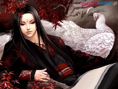 Puzzle Biały, Dziewczyna, Kimono, Paw