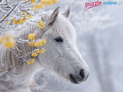 Puzzle Gałązki, Biały, Koń, Grafika AI
