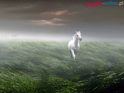 Puzzle Koń, Biały, Mgła
