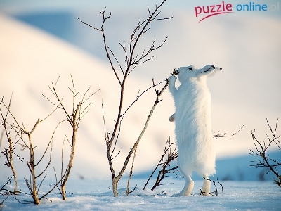 Biały, Drzewka, Zima, Śnieg, Zając
