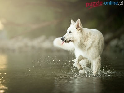 Puzzle Biały owczarek szwajcarski, Pies, Woda