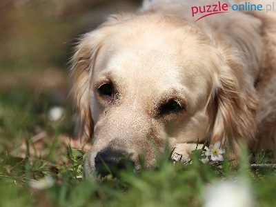 Puzzle Golden retriever, Biały, Pies, Trawa