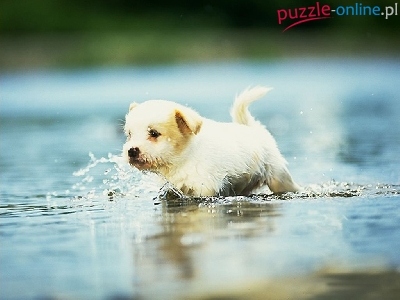 Puzzle Piesek, Biały, Woda