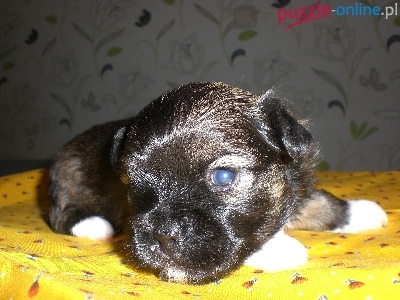 Puzzle Żółty, Szczeniaczek, Bichon, Kocyk