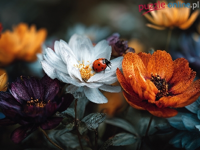 Puzzle Grafika AI, Kwiaty, Biedronka