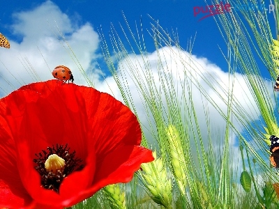 Biedronka, Liście Maki, Pole, Góry Maki, Czerwone, Łąka Stokrotki, Czerwone, Maki, Art Czerwone, Maki Dwie, Niezapominajki, Biedronki Kwiatuszki, Motylek, Grafika Motyl, Kwiat Rusałka Osetnik Biedronka Mak, Czerwony, Makówki Słońca, Promienie, Maki Łąka, Kobieta, Maki Motyl, Róża, Komputerowa, Biała, Niebieski, Grafika