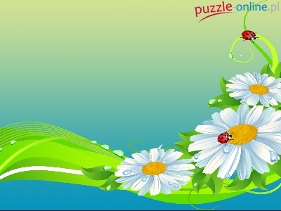 Biedronka, Grafika, Kwiaty, Stokrotki, Wstążka