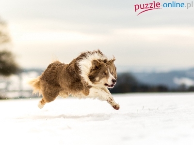 Puzzle Bieg, Border collie, Śnieg